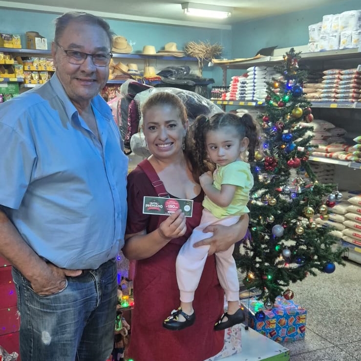 39 - Consumidor Sr. Antônio J.Lucheti, com suas netas Amada e Ana, recebendo o vale compras da colaborado Vanessa