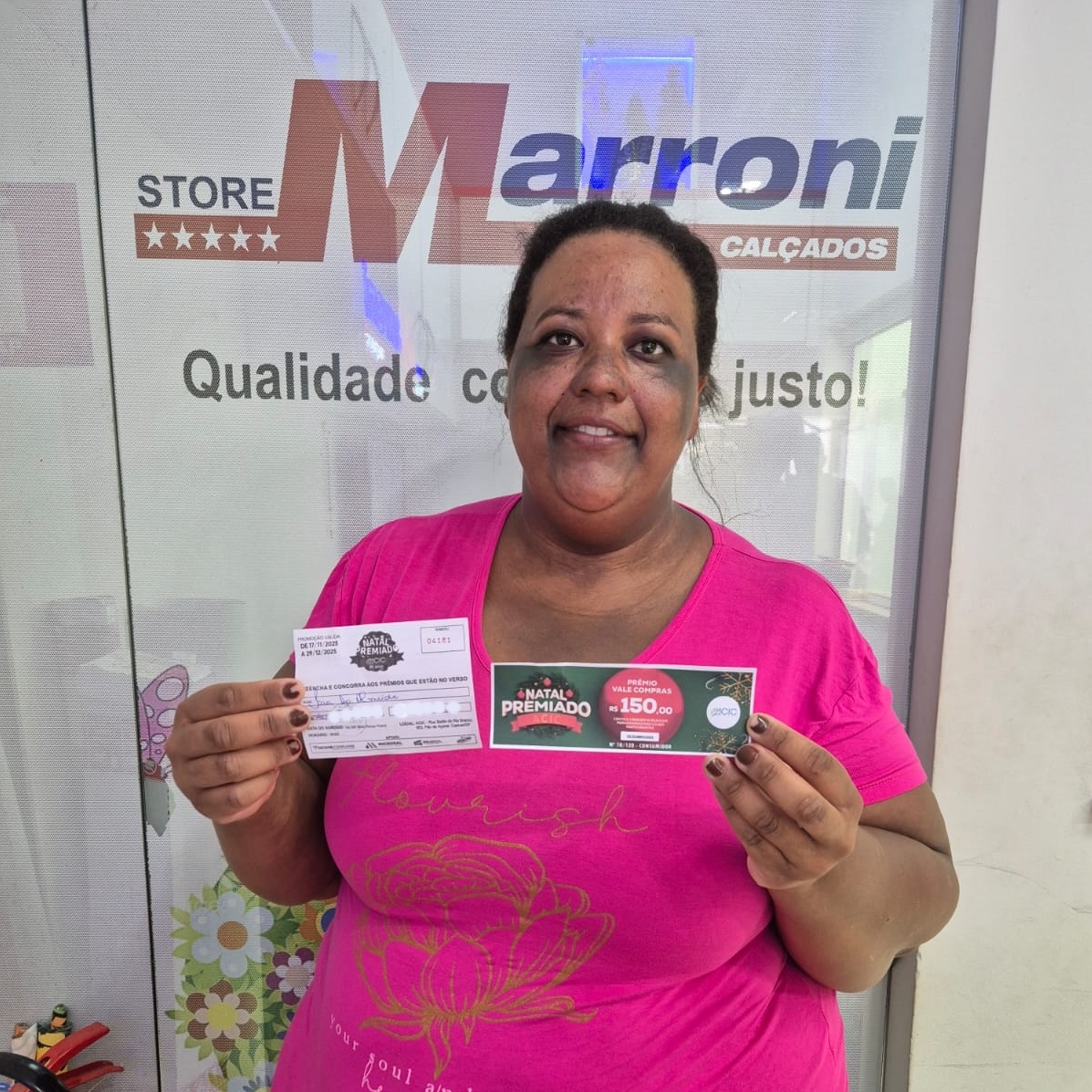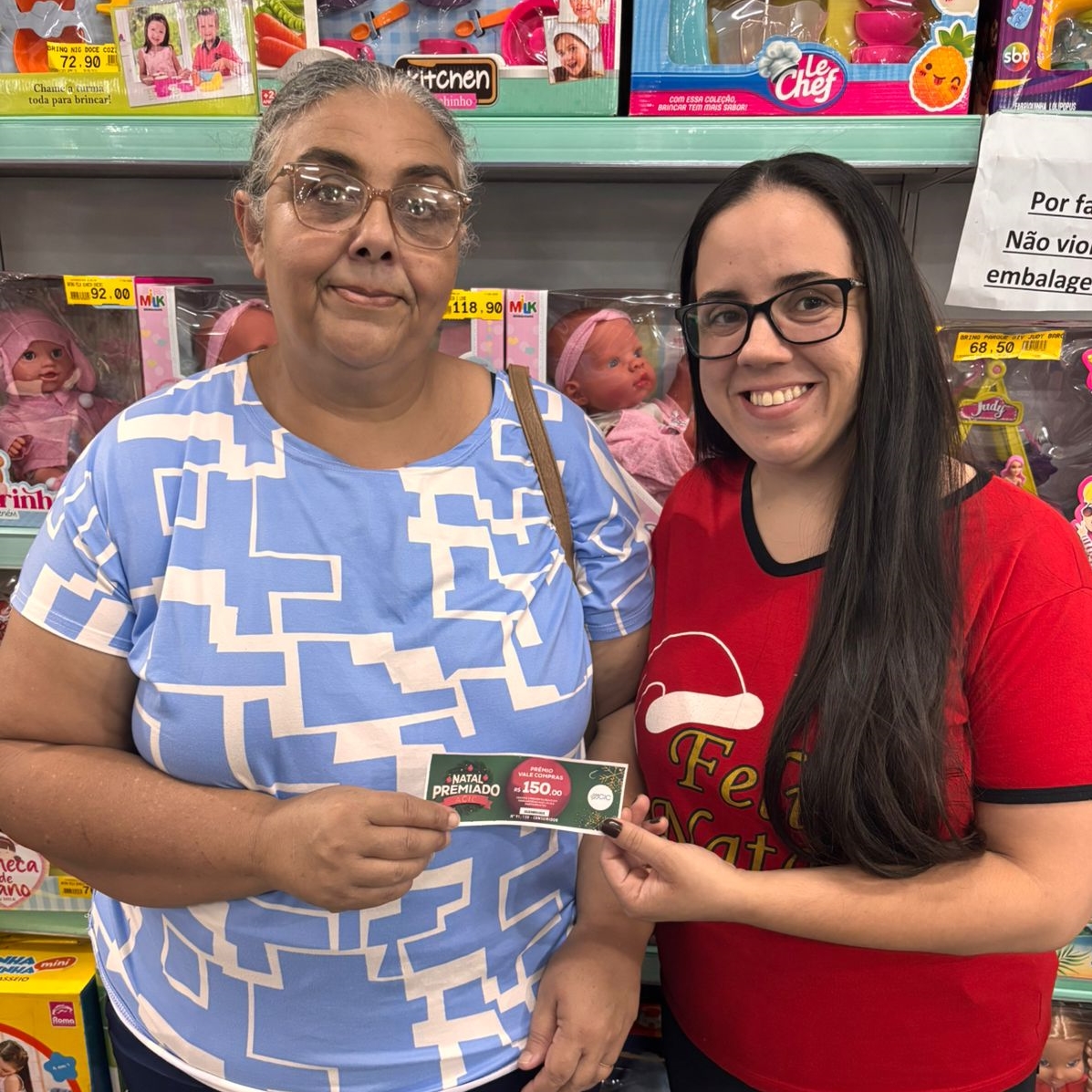 80 - Consumidora Cirlene Carla S. Barroso, recebendo a vale compras da colaboradora Márcia Braggion