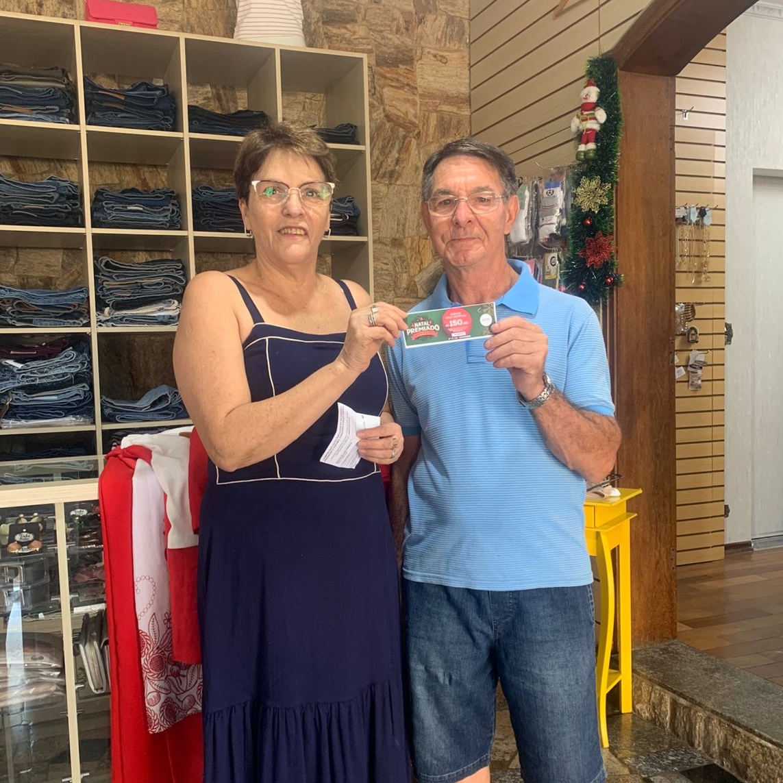 37 - Proprietário Rorlande Cerezer, contemplando a consumidora Antonieta Peressim